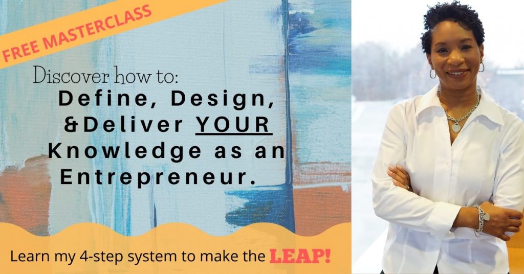 Are You Ready To LEAP? FREE Masterclass Discover how to: Define, Design & Deliver YOUR Knowledge as an Entrepreneur Free Masterclass on Wednesday, April 22nd at 7PM EST Sign Up Today!